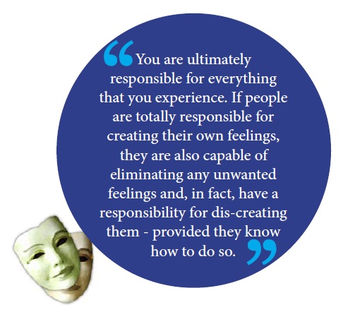 You are ultimately responsible for everything that you experience. There is, however, a positive side to this. If people are totally responsible for creating their own feelings, they are also capable of eliminating any unwanted feelings and, in fact, have a responsibility for dis-creating them – provided they know how to do so.